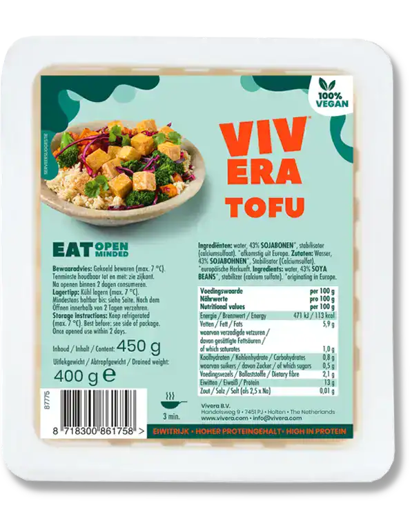 De tofu naturel van Vivera is stevig, neutraal van smaak en daardoor enorm veelzijdig. Je kunt ‘m zelf marineren, persen en bakken naar wens. Ideaal als je graag zelf je smaken bepaalt. Gebruik ‘m in roerbakgerechten, curry’s, salades of als eiwitbron bij je maaltijd. Een basisproduct voor elke plantaardige keuken.